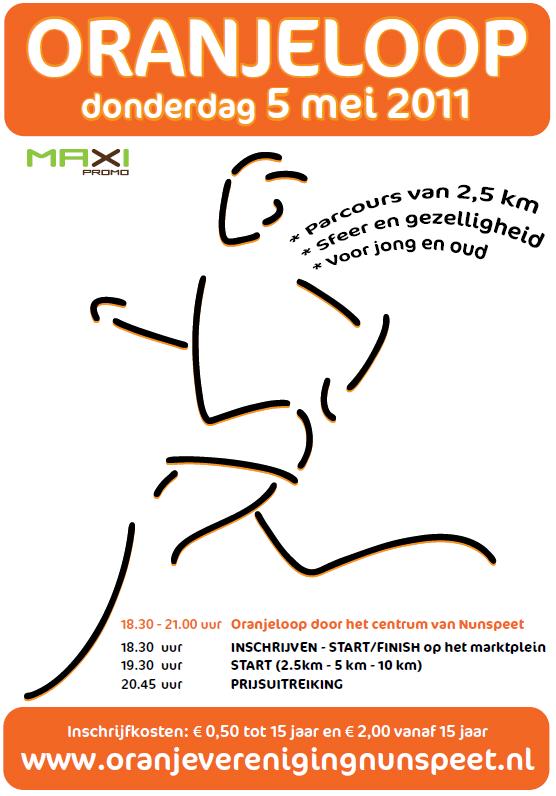 Donderdagavond 5 mei organiseert de Oranjevereniging weer een Oranjeloop door het centrum van Nunspeet....