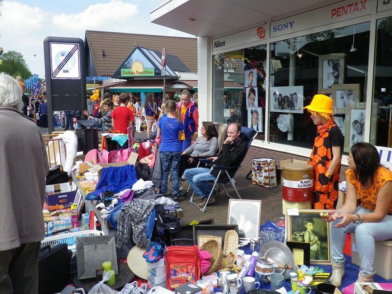 Traditiegetrouw kunnen kinderen van de basisscholen in het dorpscentrum van Nunspeet hun spulletjes verkopen....